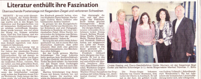 Autorenwettbewerb anlässlich des 650. Jubiläums der Stadt Pegnitz teilgenommen